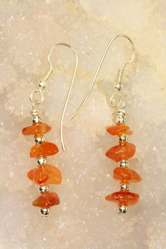 Carneol øreheng barokk med sølvkrok ca 3cm